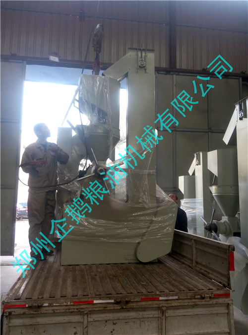 企鵝榨油機(jī)廠家工作人員早操作吊車